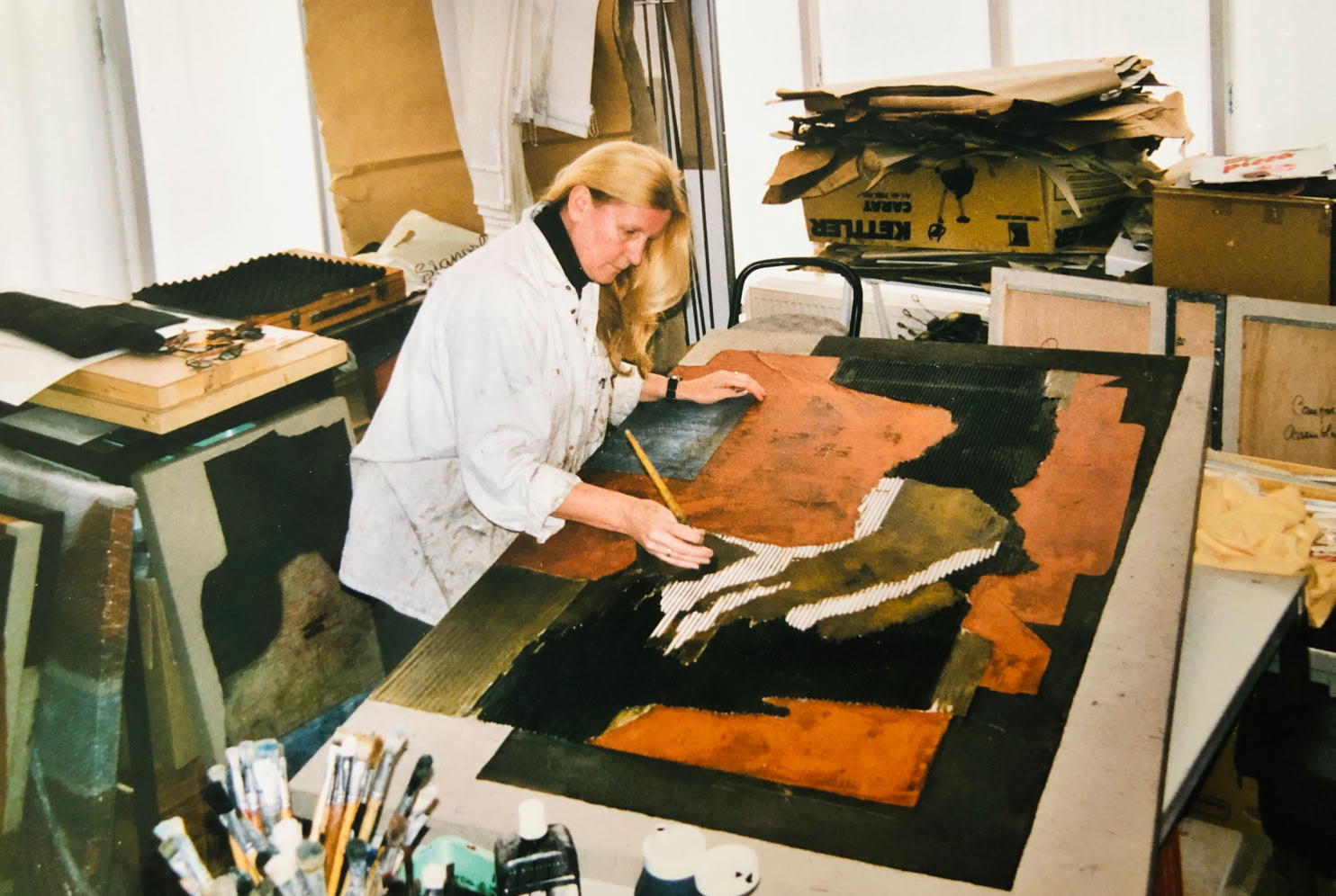 ‘Mijn werk is een heel basic experiment dat in de associatie grensverleggend groeit. De werken zijn de stille getuigen van het leven. Mijn eigen grenzen verkennen in een compositie van lagen en structuren en van kleuren die een zijn met mijn aards karakter, maakt dat ik mijzelf ingraaf in de materie op het moment van de associatie, het bouwen binnen het experiment. Deze ervaring kan ik alleen via mijn werk tonen’.