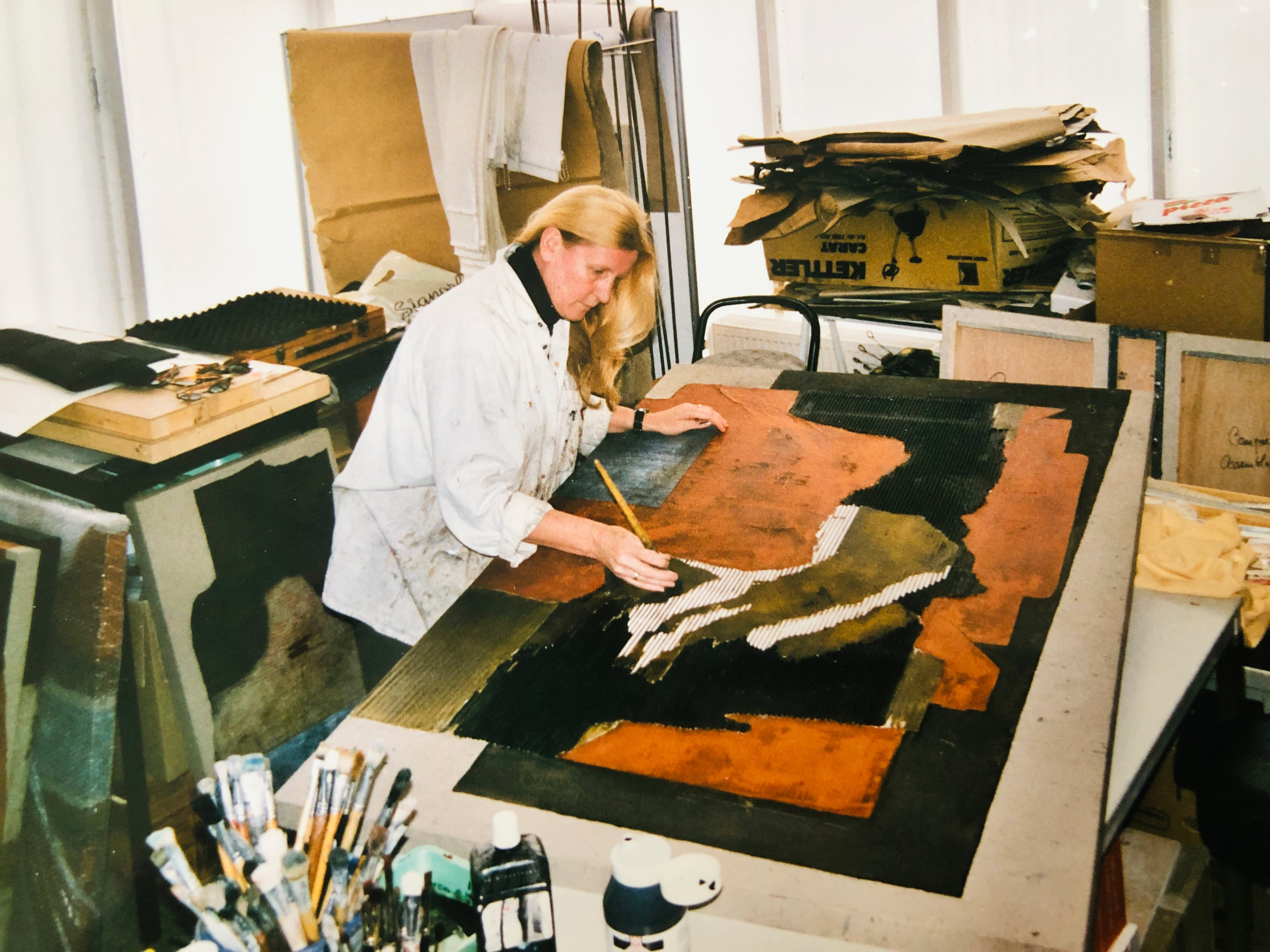 ‘Mijn werk is een heel basic experiment dat in de associatie grensverleggend groeit. De werken zijn de stille getuigen van het leven. Mijn eigen grenzen verkennen in een compositie van lagen en structuren en van kleuren die een zijn met mijn aards karakter, maakt dat ik mijzelf ingraaf in de materie op het moment van de associatie, het bouwen binnen het experiment. Deze ervaring kan ik alleen via mijn werk tonen’.